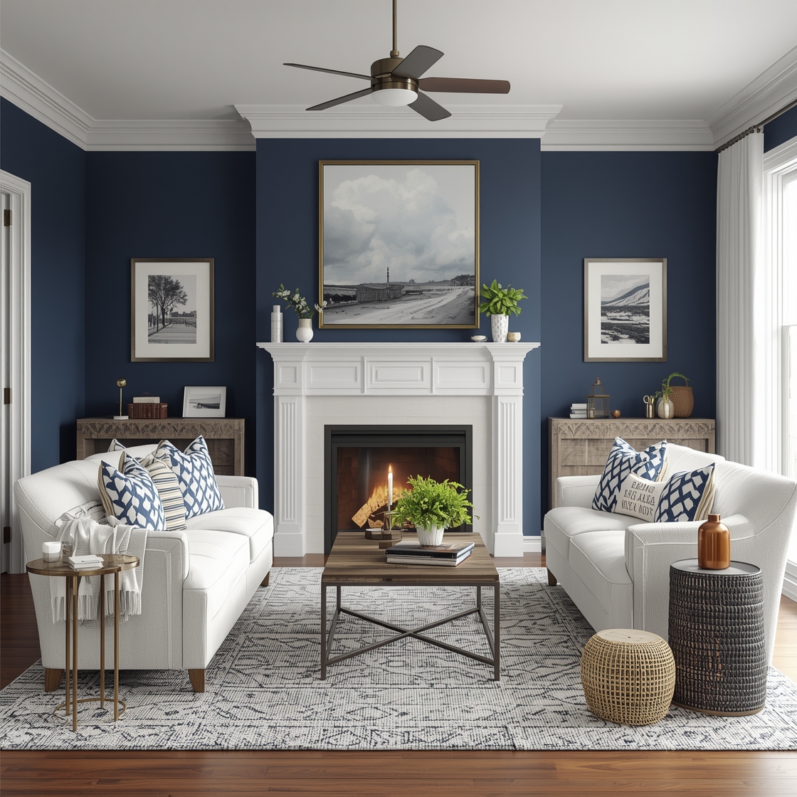 - Main Colors: Stick to whites, blues, and soft neutrals as your base.