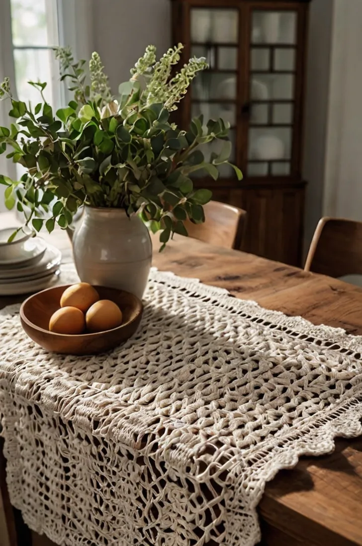 Mix Textures – Pair crochet with marble countertops or glass coffee tables for contrast.