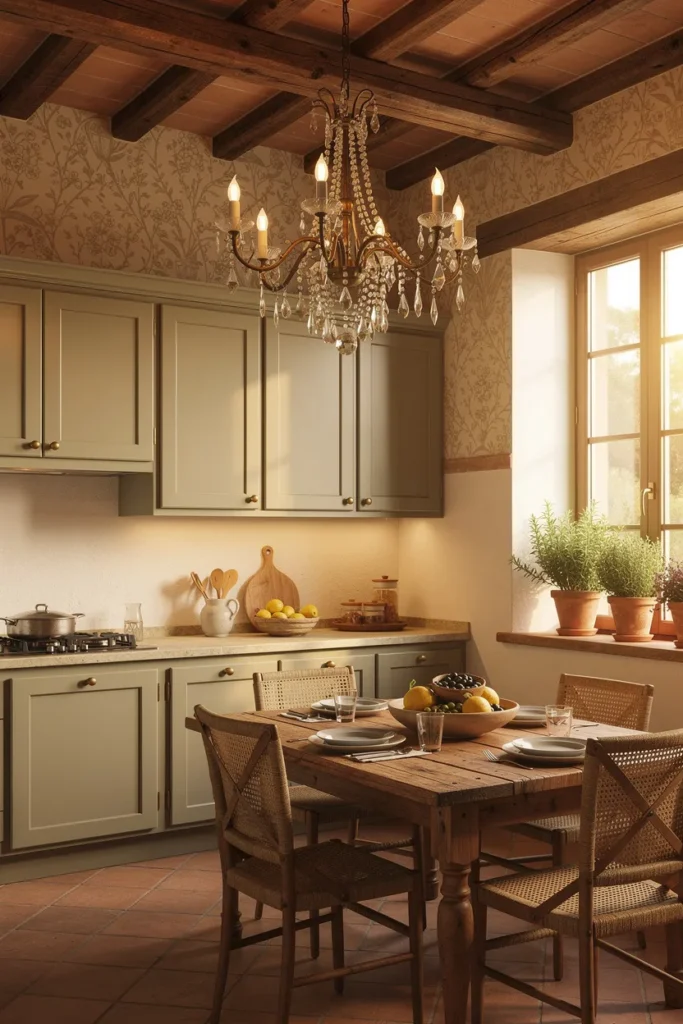 I love how European kitchens blend wood, stone, soft colors, and a hint of wear. Nothing matches exactly, and somehow that’s the magic. The cabinets don’t scream for attention, the floors tell a story, and the whole space feels warm instead of showy.