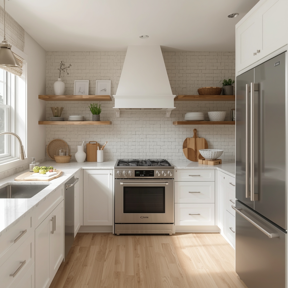 - Open Shelving: This trend opens up the kitchen space and allows for some cute dish display. Think mismatched vintage plates stacked artistically.